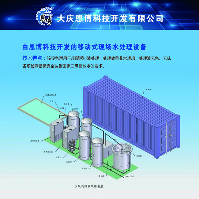 返排液集中處理站可采用固定式,也可采用移動式。因目前返排液處理工藝還未經(jīng)過現(xiàn)場試驗工業(yè)化驗證,前期的集中處理站可采用可移動式(即撬裝設(shè)備)。